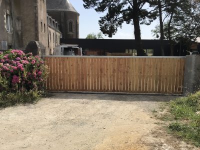 portail; coulissant; bois; métal